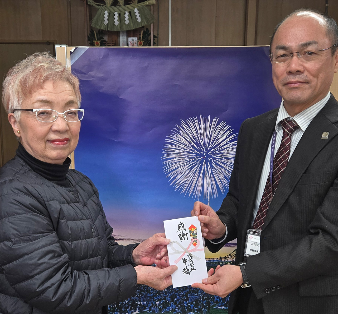 長岡花火オフィシャルパートナーの株式会社中越より、長岡花火オリジナルグッズの売上の一部をご寄付いただきました。